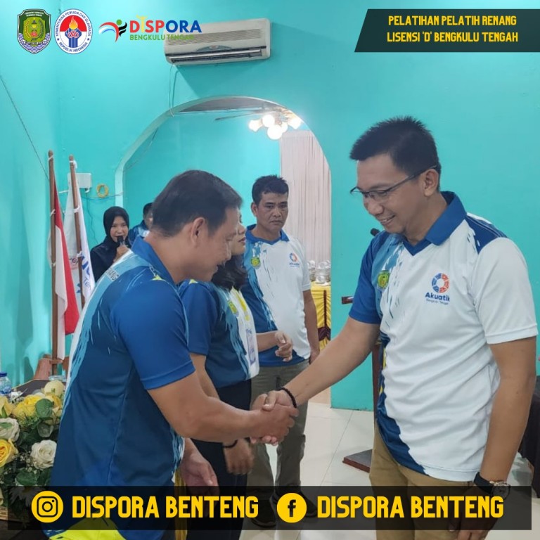 Kadispora Bengkulu Tengah Eddy Susila, S.STP, M.Si dalam hal ini mewakili Sekretaris Daerah Kab. Bengkulu Tengah menghadiri kegiatan pelatihan pelatih renang lisensi 'D' di Riung Gunung Resto Desa Nakau Kabupaten Bengkulu Tengah.